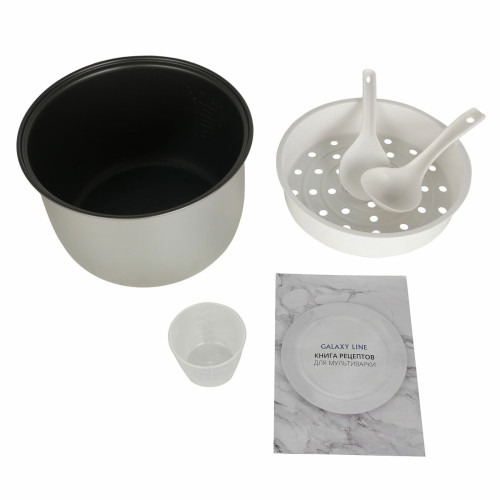 Мультиварка 1 шт. Съёмный контейнер для сбора конденсата 1 шт. Съемная чаша 1 шт. Емкость для приготовления на пару 1 шт. Ложка 1 шт. Мерный стакан 1 шт. Половник 1 шт. Шнур питания 1 шт. Руководство по эксплуатации 1 шт. Книга рецептов 1 шт. Потребительская тара 1 шт.