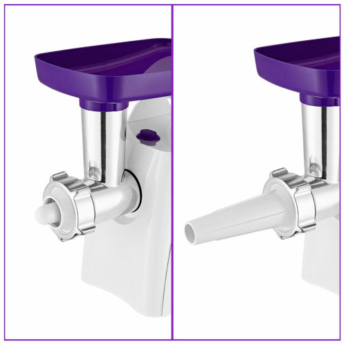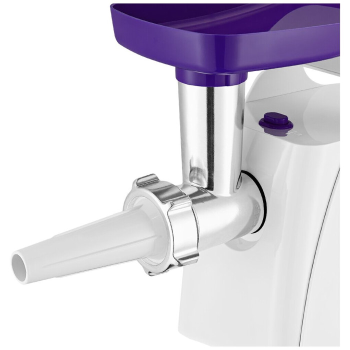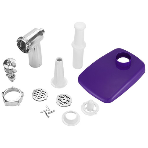 Комплектация 1. Моторный блок — 1 шт. 2. Загрузочный блок — 1 шт. 3. Загрузочный лоток — 1 шт. 4. Толкатель — 1 шт. 5. Шнек — 1 шт. 6. Насадка для кеббе — 1 шт. 7. Крышка насадки для кеббе — 1 шт. 8. Насадка для колбас — 1 шт. 9. Нож — 1 шт. 10. Кольцевая гайка — 1 шт. 11. Решетка с отверстиями 5 мм — 1 шт. 12. Решетка с отверстиями 7 мм — 1 шт. 13. Руководство по эксплуатации — 1 шт. 14. Коллекционный магнит — 1 шт.* *опционально