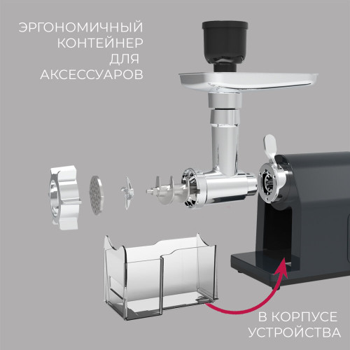 защита от перегрузки, отсек для хранения насадок, прорезиненные ножки