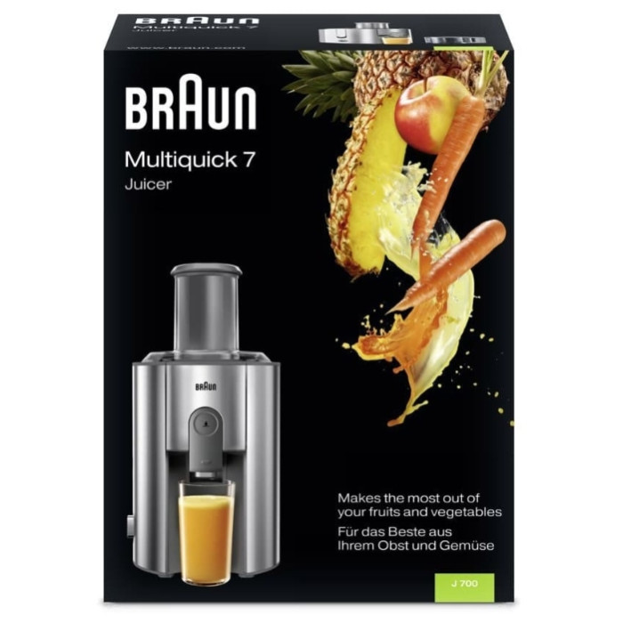 1000Вт, 2скр, диаметр отверст. 7.5см, чаша для сока мякоти 1.25/2 л, съемная чаша, загрузка целых овощей, сепаратор, крышка резерв, для сока, толкатель, щетка для чистки, пластик/сталь, серебро