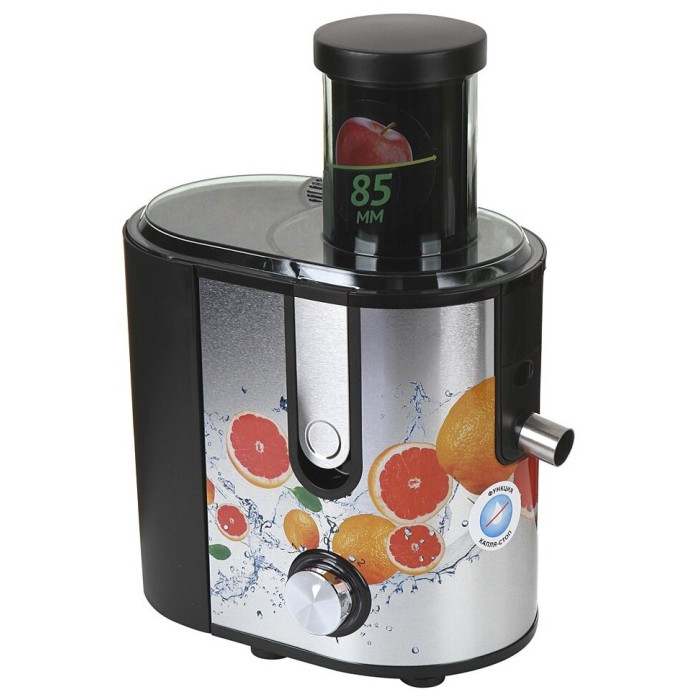 Широкий желоб для подачи целых фруктов и овощей: диаметр 85 мм.