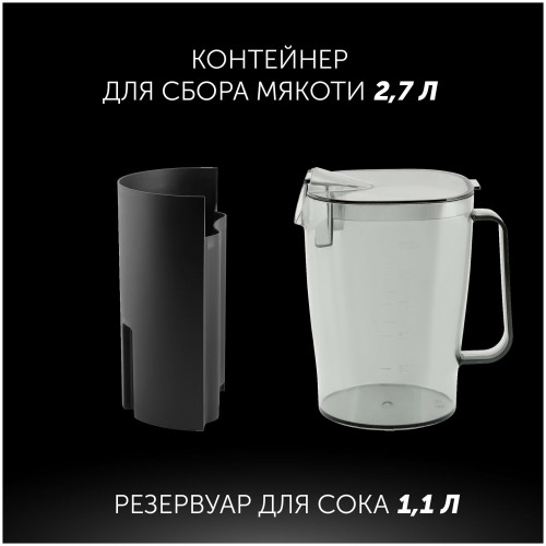 резервуар для сока: стакан; максимальная скорость вращения: 21000 об/мин