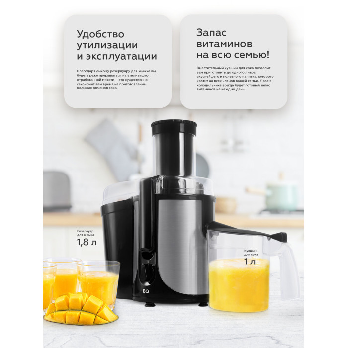 Защита от перегрузки (автоматический предохранитель), Плавный запуск, Подача сока в стакан