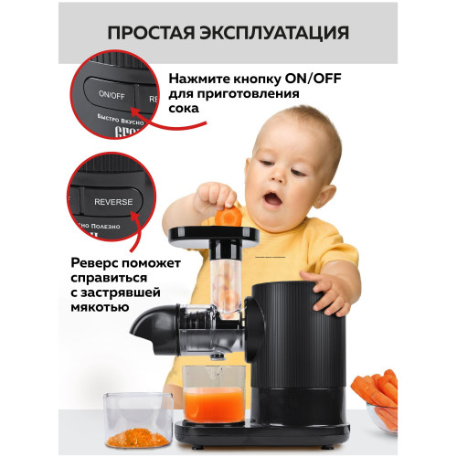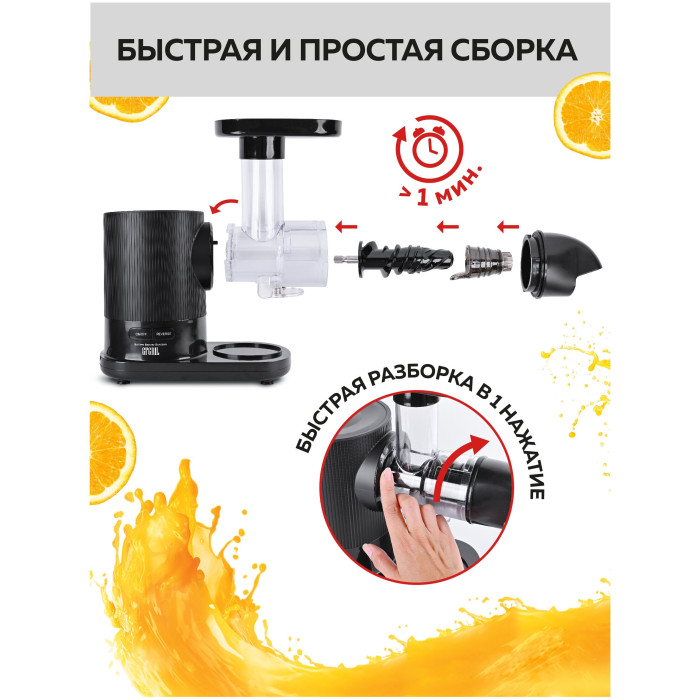 Соковыжималка шнековая 2 в 1 GFGRIL GF-J20, приготовление сорбета, система легкой очистки EasyClean