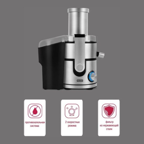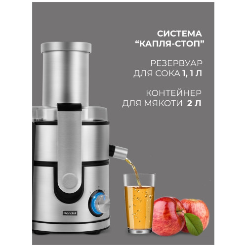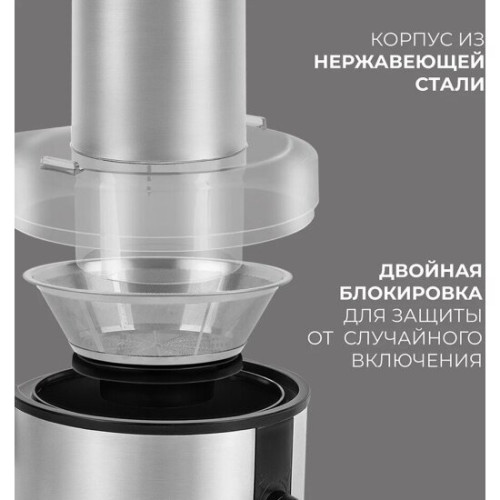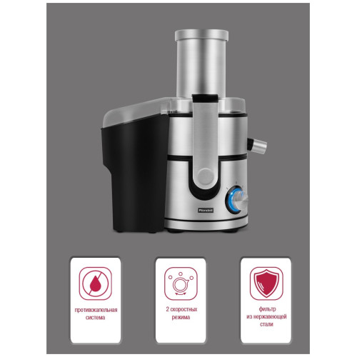 электропитание 220-240В; резервуар для сока: стакан; материал сетки: нерж. сталь