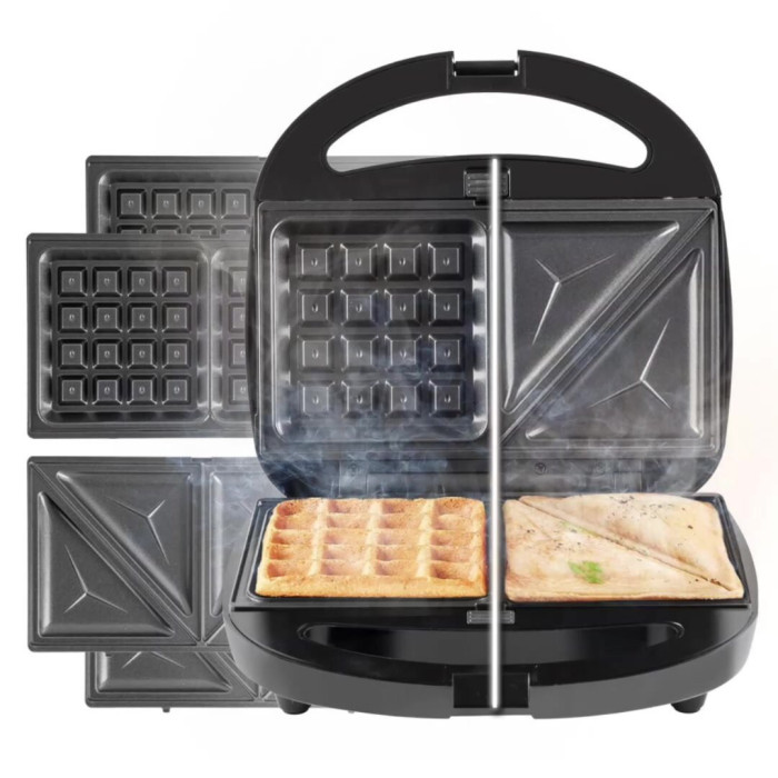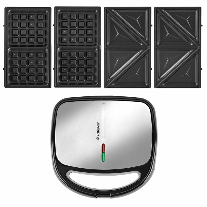Вафельница, Панели для приготовления вафель – 2 шт., Панели для приготовления сэндвичей – 2 шт., Гарантийный талон, Руководство по эксплуатации