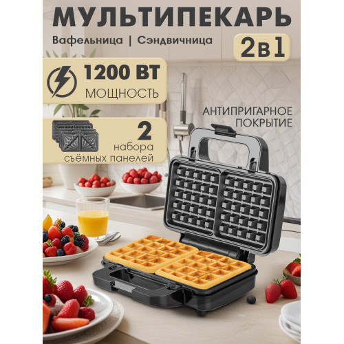 антипригарное покрытие, отсек для хранения шнура, Вертикальное хранение, Индикация включения, Индикация готовности, Ручка для переноски, Сменные панели для приготовления
