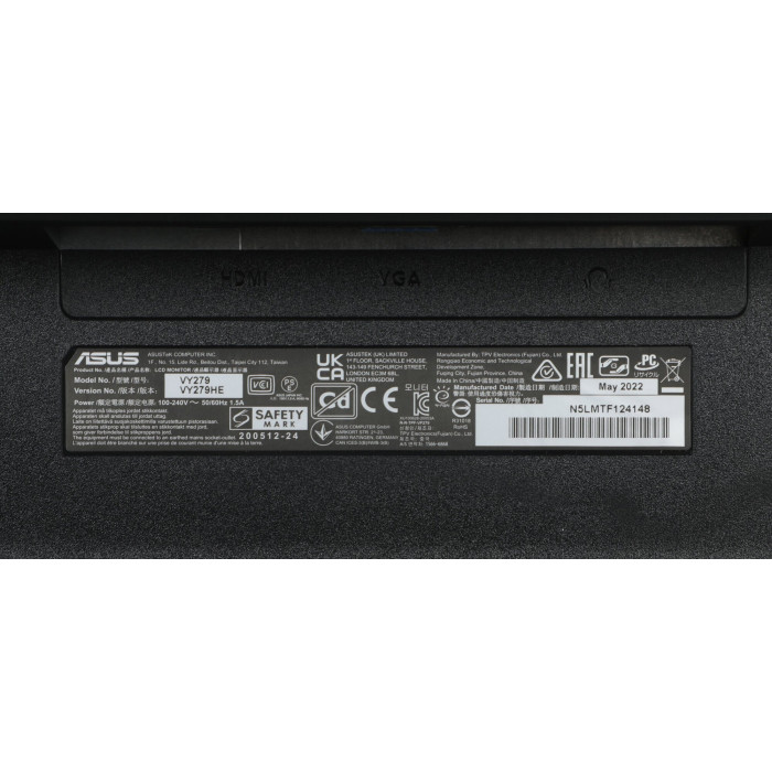 Монитор ASUS 27" VY279HE / 90LM06D5-B02170документациякабель HDMIкабель питания