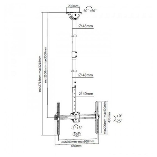 кабель-канал, наклон: +0°~-25°, поворот: 360°, расстояние от потолка: 2500-3000 мм