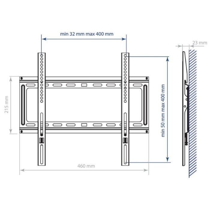 расстояние до стены 23 мм