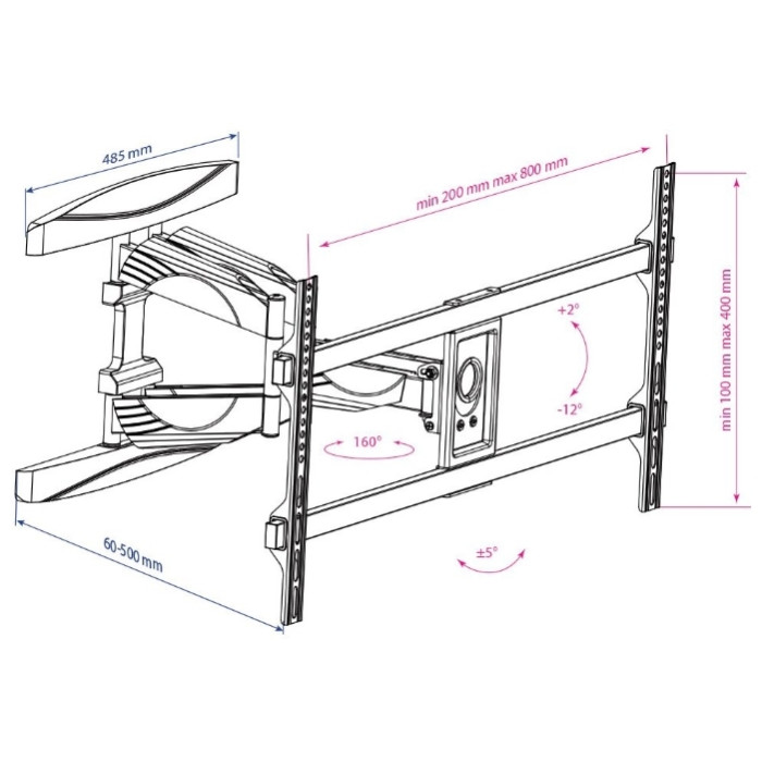 кабель-канал; угол наклона +2°/-12°; угол поворота 160°