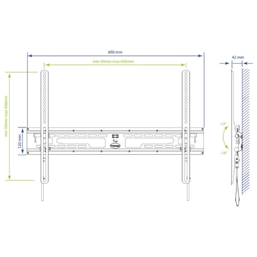 угол наклона +3 -10°