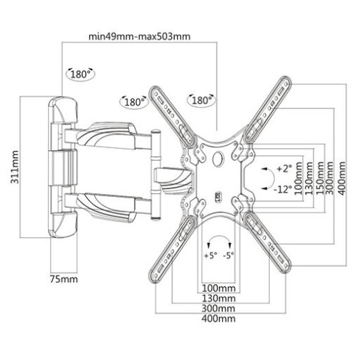 100x100 мм, 200x100 мм, 100x150 мм, 300x200 мм, 200x200 мм, 300x300 мм, 400x200 мм, 400x300 мм, 400x400 мм