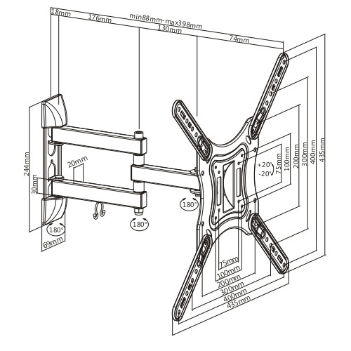 100x100 мм, 200x100 мм, 200x200 мм, 300x300 мм, 400x200 мм, 400x400 мм, 75x75 мм