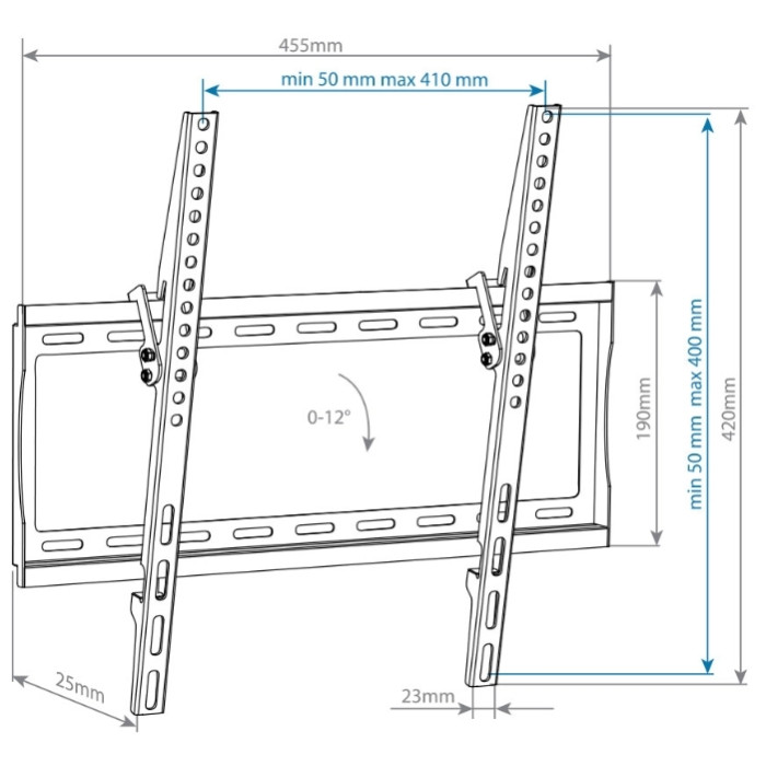 расстояние от стены 25 мм, угол наклона -12° 0°, встроенный уровень