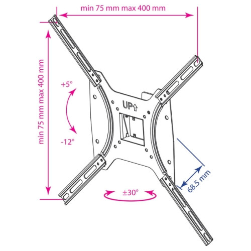 угол наклона +5 -12°, угол поворота ±30°