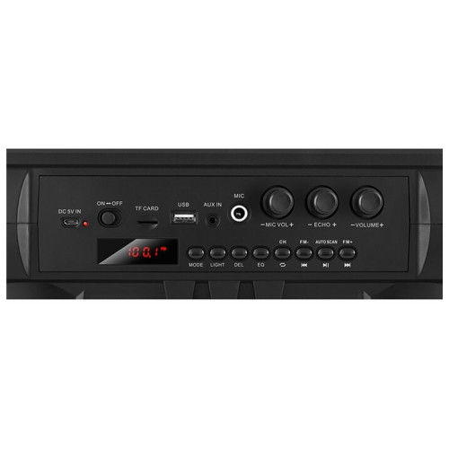 разноцветная подсветка; микрофонный вход с функцией эхо