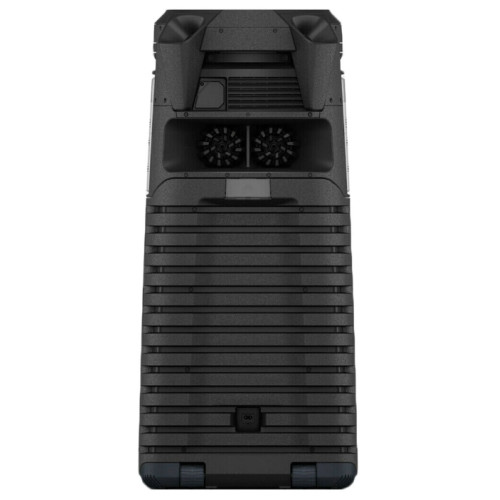 NFC, A2DP, AVRCP; зарядка гаджетов от устройства; функция Mega Bass, технология цифрового улучшения звука DSEE, беспроводное подключение по Bluetooth с функцией Party Chain, ClearAudio+, блокировка от детей, замок лотка, колеса; высокочастотный динамик на задней панели; функции Karaoke: уменьшение громкости голоса на записи, изменение тональности, очки, громкость микрофонам, Echo (Эхо), Бэк вокал, изменение голоса; подсветка динамика, лазерное шоу; пульт ду; управление жестами; защита от брызг для верхней панели