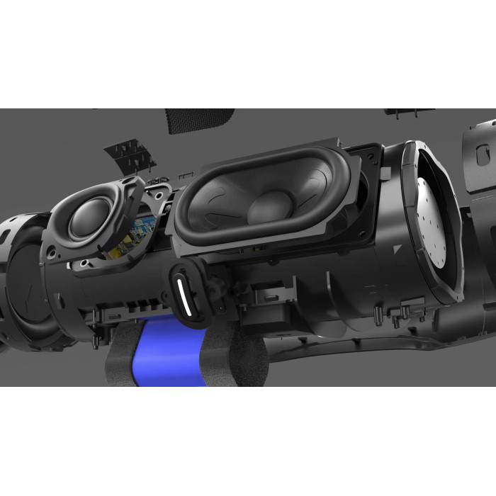 NFC, влагозащищенный корпус, встроенные часы, встроенный микрофон (функция HandsFree), режим Power Bank, ручка, световые эффекты, Защита от воды и пыли класса IP67, Магнитное экранирование, Поддержка Bluetooth, Сабвуфер в комплекте