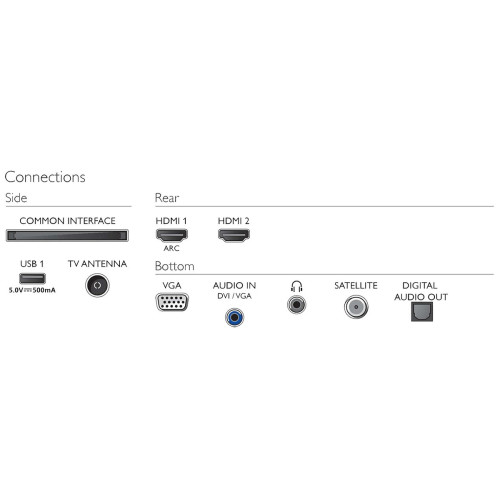 выход на наушники, вход HDMI x 2, USB Type-A, слот CI, выход аудио оптический