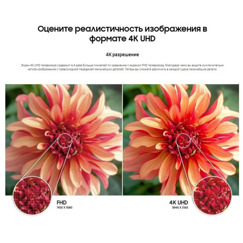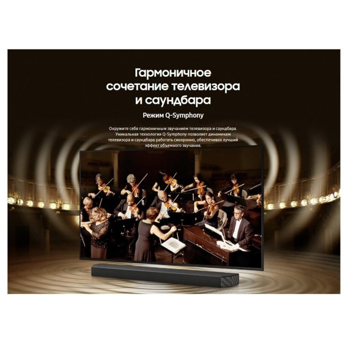 процессор Crystal 4K; тип затемнения UHD Dimming; ОС Tizen 6.0; игровой режим ALLM; поддержка Wireless DeX; режим режиссера Filmmaker Mode