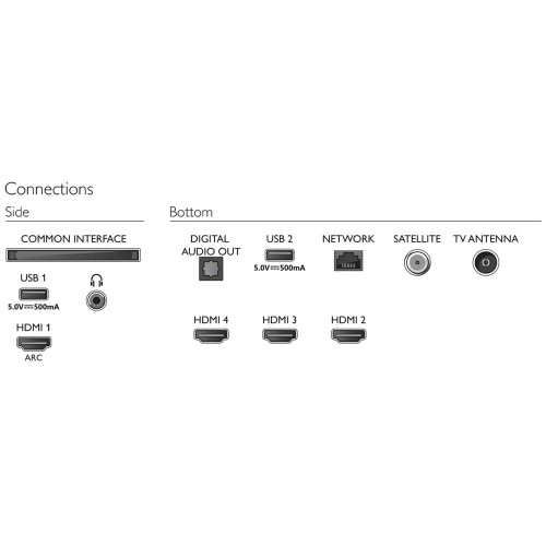 Ethernet - RJ-45, USB Type-A x 2, вход HDMI x 4, выход аудио цифровой оптический, выход на наушники, слот CI, слот CI/CI+