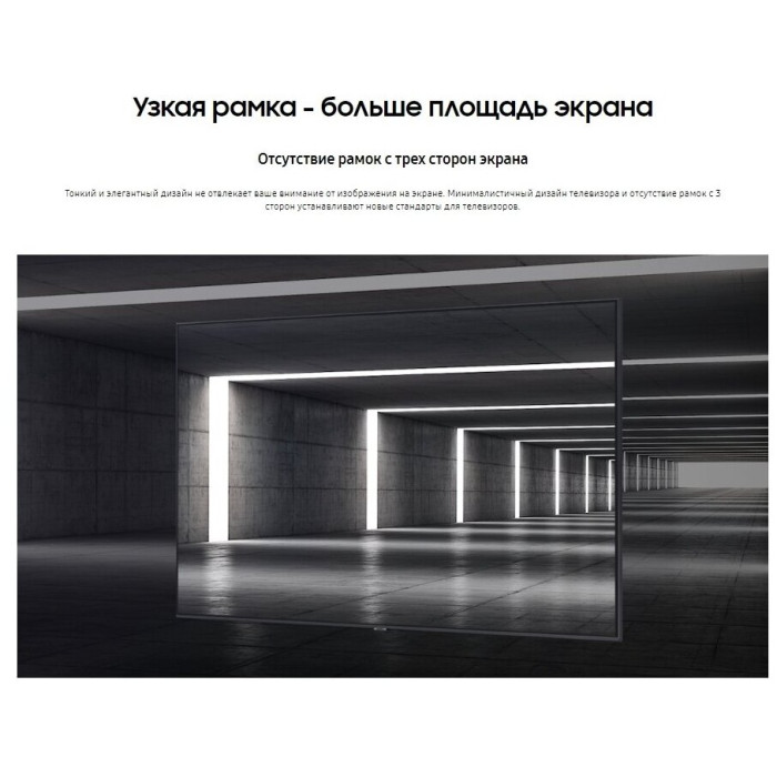 Откройте для себя новые миры с телевизором Samsung UE55AU7540UXRU. Реалистичное изображение Интеллектуальная система трансформирует любой контент в картинку с разрешением 4К. Наслаждайтесь четкими, детализированными и реалистичными кадрами!Благодаря технологии HDR вы сможете рассмотреть детали даже в самых темных и светлых сценах. А функция PurColour наполнит каждый момент насыщенными цветами, неотличимыми от реальности - ваше любимое кино заиграет новыми красками. Объемное звучание Уникальная технология Q-Symphony обеспечит синхронную работу телевизора и саундбара - вы сможете целиком погрузиться в атмосферу любимого кино и прочувствовать всю мощь звука. Продуманный дизайн Тонкий корпус и лаконичный дизайн не будут отвлекать вашего внимания от происходящего на экране. А отсутствие рамок с трех сторон не только придаст телевизору стильный внешний вид, но и сделает изображение более глубоким и объемным.