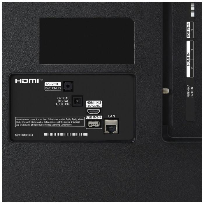 RS-232, Ethernet - RJ-45, вход HDMI x 3, USB Type-A x 2, слот CI/CI+, выход аудио цифровой оптический