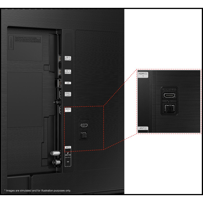 Ethernet - RJ-45, вход HDMI x 3, USB Type-A x 2, слот CI/CI+, выход аудио цифровой оптический