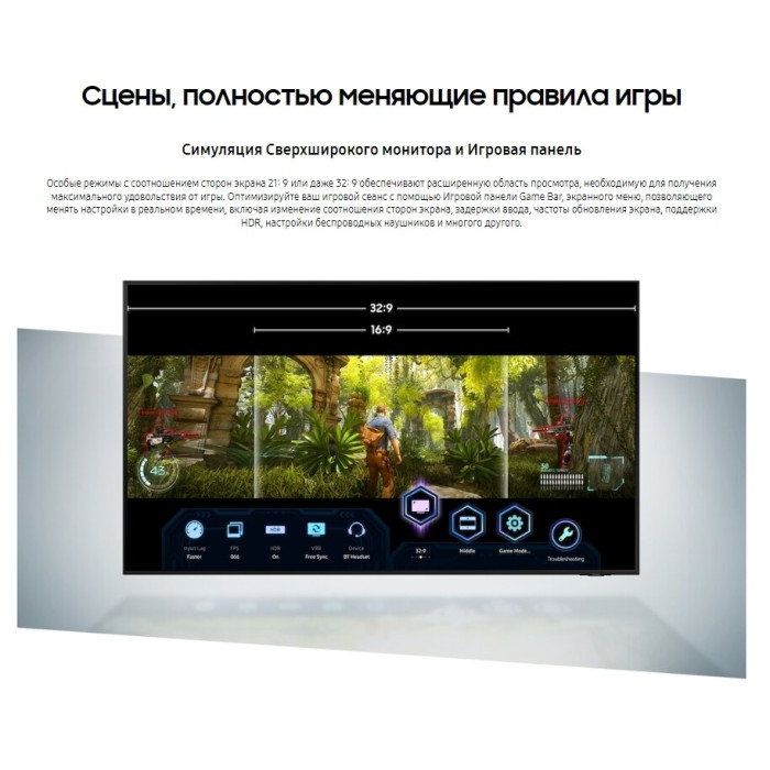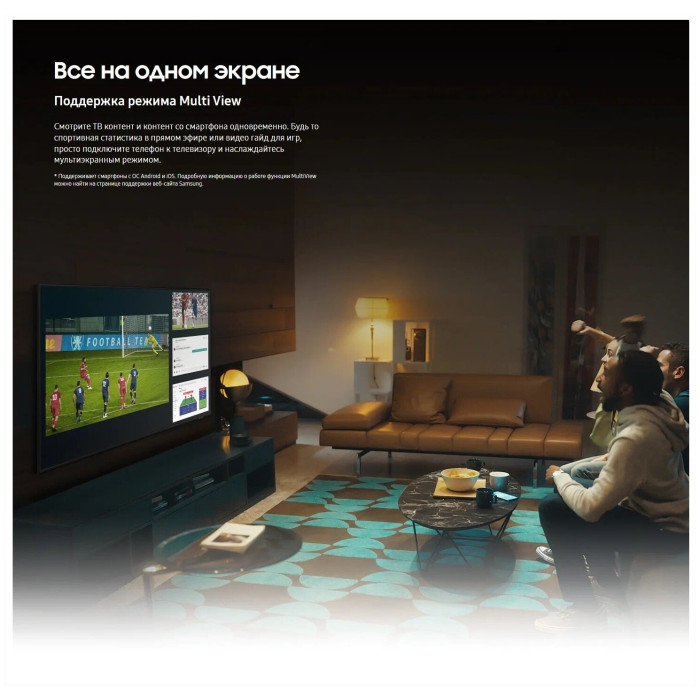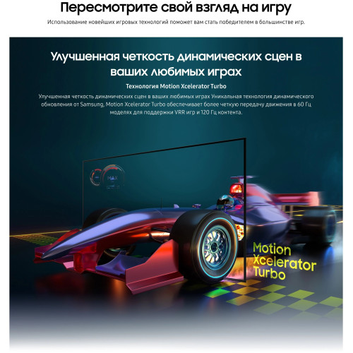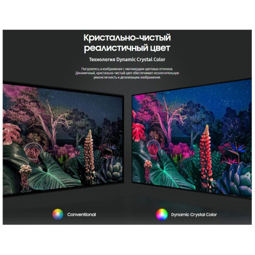 технология Contrast Enhancer (Усиление контрастности), режим "Кино", технология Auto Motion Plus (повышение четкости передачи динамичных сцен), поддержка режима Natural Mode (Естественная передача цвета), режим режиссера Filmmaker Mode (FMM), поддержка SmartThings, отображение экрана мобильного устройства на проекции, поддержка WiFi Direct, поддержка функции "Sound Mirroring", передача данных (Data Broadcasting) HbbTV 2.0.2(RU), поддержка приложения TV Key, технология HDMI ARC - Audio Return Channel (реверсивный звуковой канал); размеры подставки 363.2 x 338.9 мм