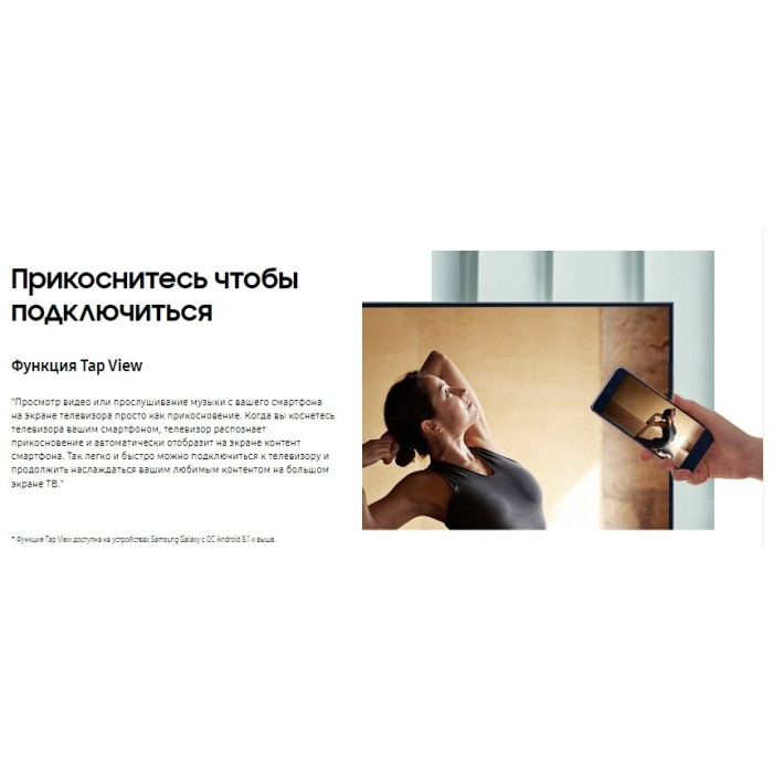процессор Crystal 4K; тип затемнения UHD Dimming; ОС Tizen 6.0; игровой режим ALLM; режим режиссера Filmmaker Mode; поддержка Wireless DeX; Motion Xcelerator