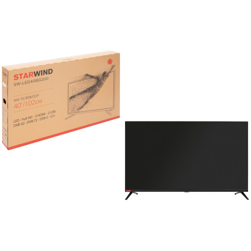 Starwind SW-LED40BG200 – это полноценный медиаплеер с широкоугольным дисплеем и тонкими рамками. Сорокадюймовый (102 см) экран благодаря современной LED-матрице позволяет выводить изображение в формате FULL HD с разрешением 1920x1080. Сочетание контрастности 5000:1, яркости 220 кд/м2 и частоты обновления дисплея 60 Гц подобрано таким образом, чтобы все цветовые тона выглядели глубоко, естественно и живо. Углы обзора прибора составляют 170 градусов в вертикальной и горизонтальной ориентациях. То есть изображение с него прекрасно просматривается с любой точки помещения, где бы он ни находился.