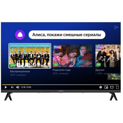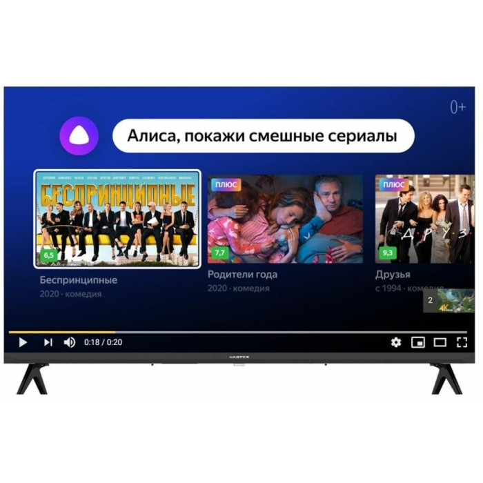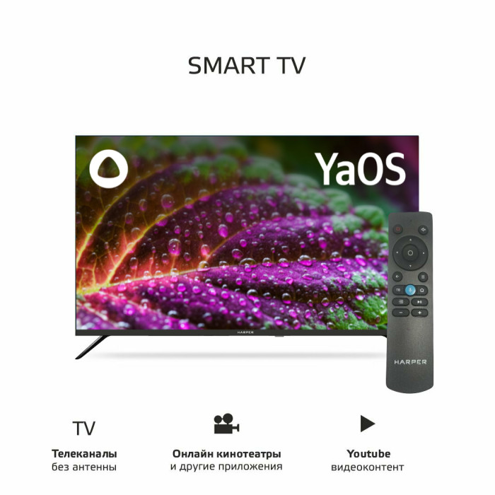 Телевизор Harper 32R750TS – это не просто “умный” телевизор! Новинка поставляется с операционной системой Яндекс ТВ и встроенным виртуальным ассистентом Алиса. Поэтому вы можете пользоваться всеми своими привычными подписками и получать доступ к любому контенту с максимальным комфортом. Управление телевизором возможно голосом, с ПДУ или с помощью любых других устройств ввода, совместимых со Smart TV. Телевизор с Алисой Harper 32R750TS - это настоящий медиацентр с поддержкой Bluetooth и широким выбором функций. Для подключения телевизора Harper 32R750TS к различным устройствам, а также для воспроизведения видео с внешних носителей предусмотрены разъемы USB и HDMI, а для подключения к сети интернет можно использовать беспроводной интерес Wi-Fi 2.4 ГГц или проводной подключение с разъёмом RJ-45 (витая пара).