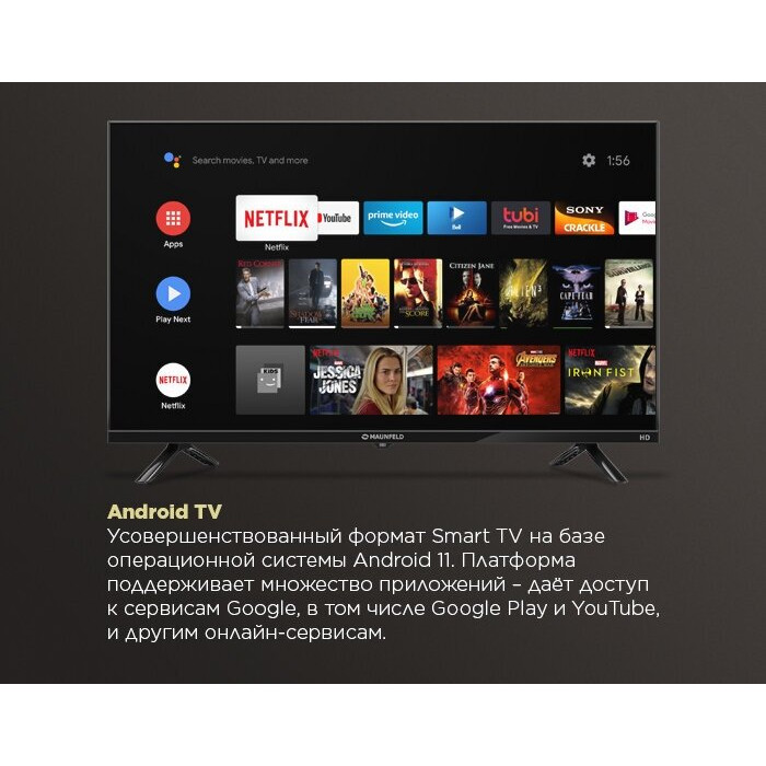 диагональ: 32"-39", диагональ (точно): 32 ", Разрешение HD: 720p HD, частота обновления экрана: 60 Гц, технология экрана: LED, HD, Поддержка цифрового ТВ: DVB-C, DVB-S, DVB-S2, DVB-T, DVB-T2, нет, Платформа Smart TV: Android, беспроводная связь: Wi-Fi