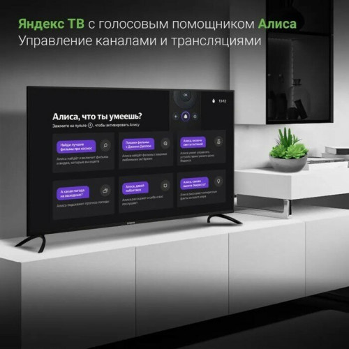 диагональ: 51"-57", диагональ (точно): 55 ", Разрешение HD: 4K UHD, частота обновления экрана: 60 Гц, технология экрана: LED, Поддержка цифрового ТВ: нет, Платформа Smart TV: Яндекс ТВ, беспроводная связь: Wi-Fi