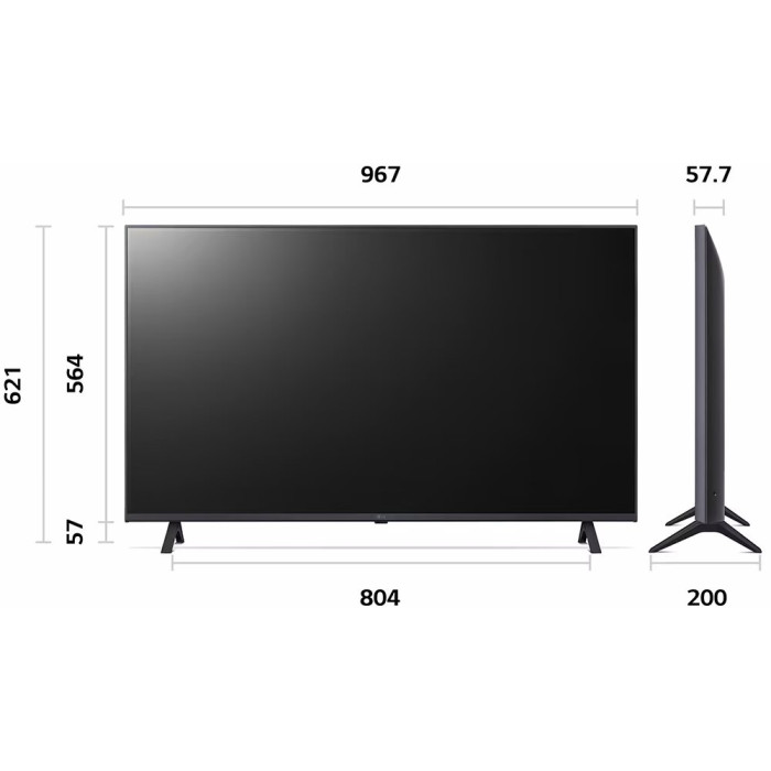 диагональ: 40"-45", диагональ (точно): 43 ", Разрешение HD: 4K UHD, частота обновления экрана: 50 Гц, технология экрана: HDR, LED, Поддержка цифрового ТВ: DVB-S2, DVB-T2, Платформа Smart TV: webOS, беспроводная связь: Airplay, Bluetooth, Wi-Fi, Экосистема Умного дома: LG Smart ThinQ, Количество входов HDMI: 3, особенности: игровой режим, год создания модели: 2023