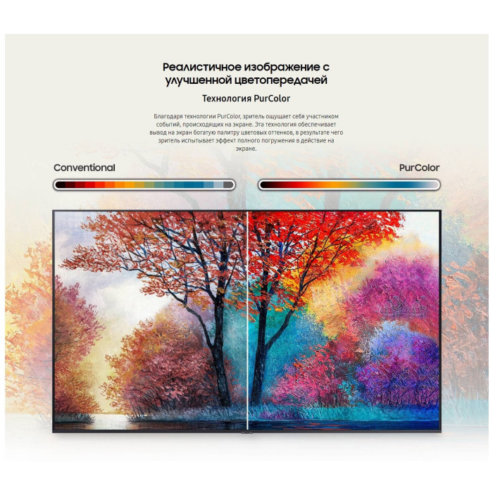 Благодаря технологии PurColor, зритель ощущает себя участником событий, происходящих на экране. Эта технология обеспечивает вывод на экран богатую палитру цветовых оттенков, в результате чего зритель испытывает эффект полного погружения в действие на экране.