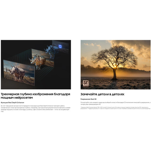 диагональ: 58"-69", диагональ (точно): 65 ", Разрешение HD: 8K UHD, частота обновления экрана: 100 Гц, технология экрана: HDR, Neo QLED, QLED, Поддержка цифрового ТВ: DVB-C, DVB-S, DVB-S2, DVB-T, DVB-T2, аналоговый (PAL, SECAM, NTSC), нет, Платформа Smart TV: Tizen, беспроводная связь: Bluetooth, Wi-Fi, Экосистема Умного дома: Samsung SmartThings, Количество входов HDMI: 4, особенности: EPG, HbbTV, Local Dimming, Time Shift, голосовое управление, датчик освещенности, игровой режим