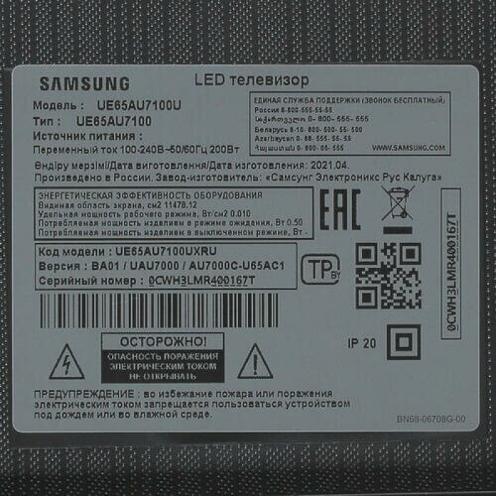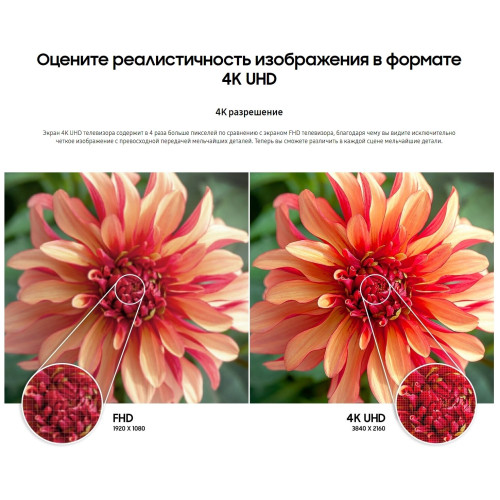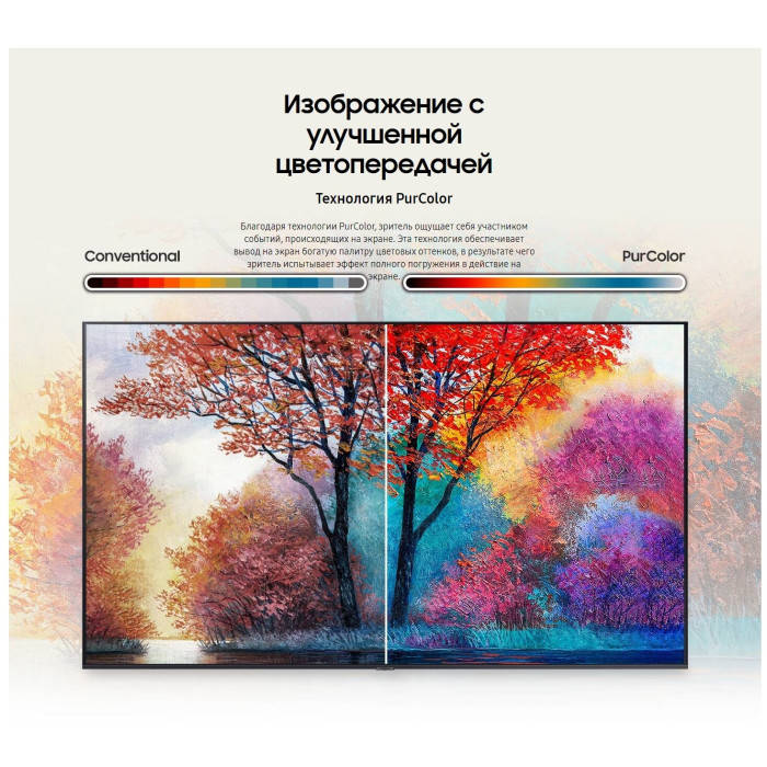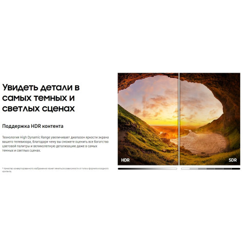 Телевизор Samsung UE65AU7100 65 дюймов серия 7 Smart TV UHD. Благодаря технологии PurColor, зритель ощущает себя участником событий, происходящих на экране. Эта технология обеспечивает вывод на экран богатую палитру цветовых оттенков, в результате чего зритель испытывает эффект полного погружения в действие на экране. Экран 4K UHD телевизора содержит в 4 раза больше пикселей по сравнению с экраном FHD телевизора, благодаря чему вы видите исключительно четкое изображение с превосходной передачей мельчайших деталей. Теперь вы сможете различить в каждой сцене мельчайшие детали. Технология High Dynamic Range увеличивает диапазон яркости экрана вашего телевизора, благодаря чему вы сможете оценить все богатство цветовой палитры и великолепную детализацию даже в самых темных и светлых сценах. Окружите себя гармоничным звучанием телевизора и саундбара. Уникальная технология Q-Symphony позволяет динамикам телевизора и саундбара работать синхронно, обеспечивая лучший эффект объемного звучания.