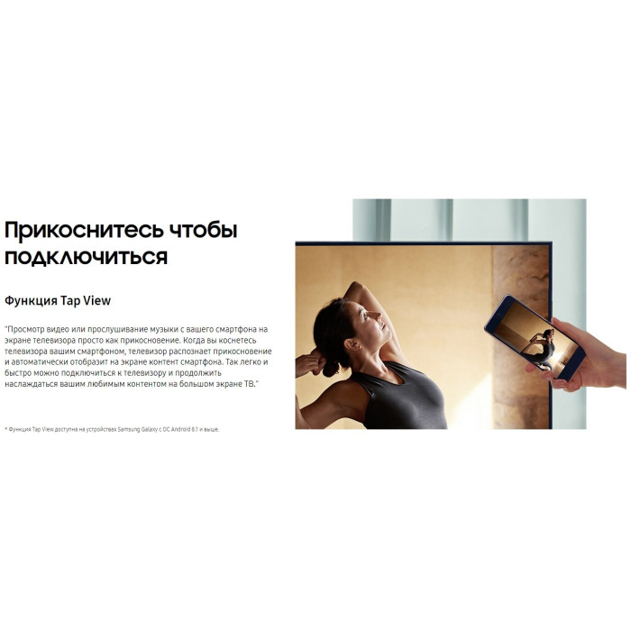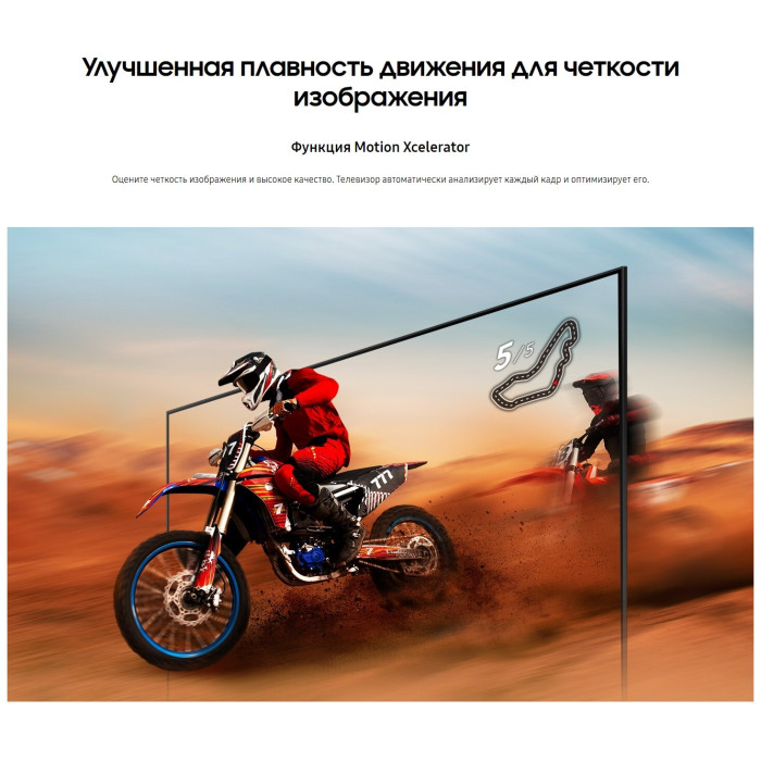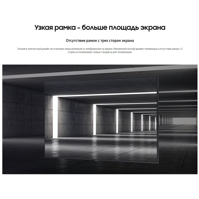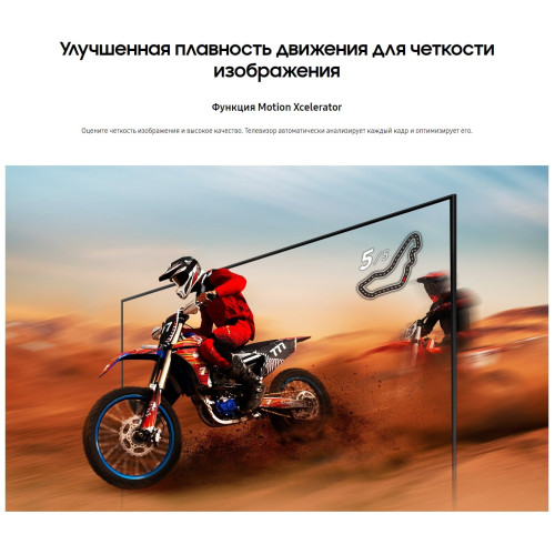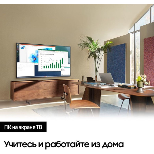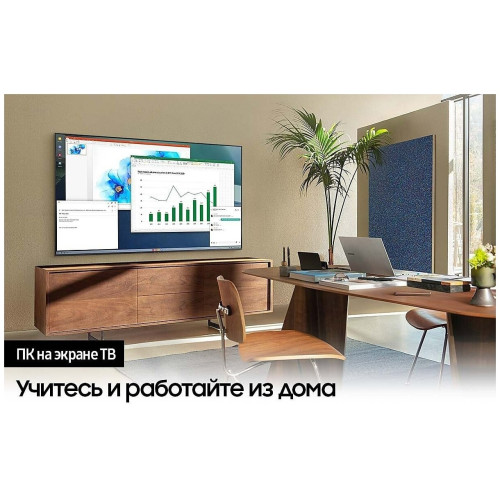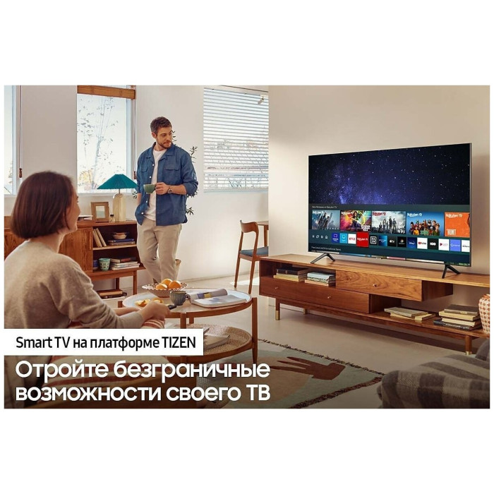 процессор Crystal 4K; тип затемнения UHD Dimming; игровой режим ALLM; поддержка Wireless DeX; ОС Tizen 6.0; Q-Symphony; Tap View; Auto Motion Plus, Motion Xcelerator; режим кино; режим интерьер; поддержка SmartThings; поддержка приложения «Интернет вещей»; галерея; звук ТВ в мобильное устройство; игровой режим; автовключение игрового режима (ALLM);
