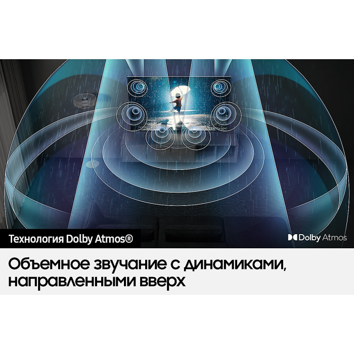 Dolby Atmos, Dolby Audio, Dolby Digital, Dolby Digital Plus, Dolby MS12, автоматическое выравнивание громкости, объемное звучание (Surround), сабвуфер, стереозвук