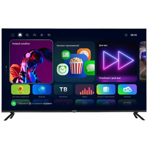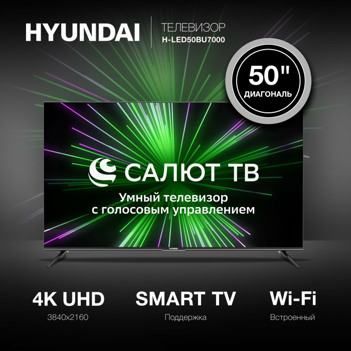 Цвет: черный Размеры: 1116.8x701.5x212.2мм Тип: LED-телевизор PartNumber/Артикул Производителя: H-LED50BU7000 Вес: 9.3 Разрешение: 3840x2160 Операционная система: Салют ТВ Разъем USB: 2 Разъем HDMI: 3 Яркость экрана: 250 Частота обновления: 60 Количество динамиков: 2 Мощность одного динамика: 8 Серия: Салют ТВ Бренд: HYUNDAI Цифровой тюнер DVB-T2: ДА Цифровой тюнер DVB-C: ДА Цвет телевизора: черный Диагональ экрана (дюймы): 50 Встроенный Wi-Fi: да Цифровой тюнер DVB-S: ДА Цифровой тюнер DVB-T: ДА Формат экрана: 16:9 Цифровой тюнер DVB-S2: ДА Размер VESA: 200x200 Энергопотребление в режиме ожидания: 0.5 Тип блока питания: встроенный Разъем CI+: 1 Разъем RJ-45 (Ethernet): 1 Антенный вход: 2 Медиаплеер USB: ДА Таймер включения/выключения: ДА Вес без подставки: 9 Размеры без подставки: 1116.8x651.5x92.8мм Энергопотребление в рабочем режиме: 115 Углы обзора (гориз/верт): 178x178 Покрытие экрана: глянцевое Процессор изображения: G52(2EE)MC1 Декодер Dolby Digital Plus: ДА Декодер Dolby Digital: ДА Разъем композитный (видео): 1 FM-радио: ДА Разъем S/PDIF коаксиальный: 1 Объем оперативной памяти: 1.5 Ширина: 1116.8 Высота: 701.5 Глубина: 212.2 Комплектация: Полную комплектацию товара уточняйте у производителя Класс энергоэффективности: A Дизайн: Frameless Диагональ: 50" (127 см) Объем встроенной памяти: 8 Встроенная акустика: да Мощность акустики: 16 Поддержка PAL: ДА Поддержка SECAM: ДА Голосовой помощник: Sber Салют Подсветка: LED Модель: H-LED50BU7000 Вес упаковки (ед): 13.5 Длина упаковки (ед): 1.18 Ширина упаковки (ед): 0.13 Высота упаковки (ед): 0.71 Габариты упаковки (ед) ДхШхВ: 1.18x0.13x0.71 Объем упаковки (ед): 0.108914 Цвет для фильтра: черный Страна производства: Беларусь Тип разъема USB: мультимедийный Безрамочный дизайн: ДА Версия разъемов HDMI: 2.1 Разрешение по горизонтали: 3840 Разрешение по вертикали: 2160 Контрастность: 5000:1 Поддержка HDR: ДА Время отклика пикселя: 5 Угол обзора горизонтальный: 178 Угол обзора вертикальный: 178 Поддержка CI+/PCMCIA: ДА Цифровое шумоподавление: ДА Форматы воспроизведения: Различные форматы файлов видео, аудио, изображений Ширина без подставки: 1116.8 Высота без подставки: 651.5 Глубина без подставки: 92.8 Покрытие корпуса: матовое Тип панели: LED Тип подставки: по бокам Тип для Ситилинка: Телевизор Поддерживаемые стандарты изображения: PAL, SECAM Тип звукового декодера: Dolby Digital, Dolby Digital Plus Стандарт разрешения экрана: 4K Ultra HD Диагональ экрана (см): 127 Поддержка SMART TV: ДА Встроенный Bluetooth: да Тип пульта ДУ в комплекте: Bluetooth Технологии HDMI: HDMI ARC, HDMI-CEC Технология HDMI ARC: ДА Технология HDMI-CEC: ДА Расстояние между ножками: 1072.4