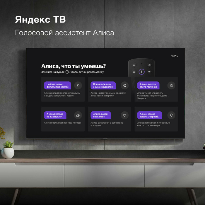 Расстояние между ножками: 1605 мм Платформа: «Яндекс.ТВ» (на Android) Процессор изображения: ARM Mali-G52 2EE MC1