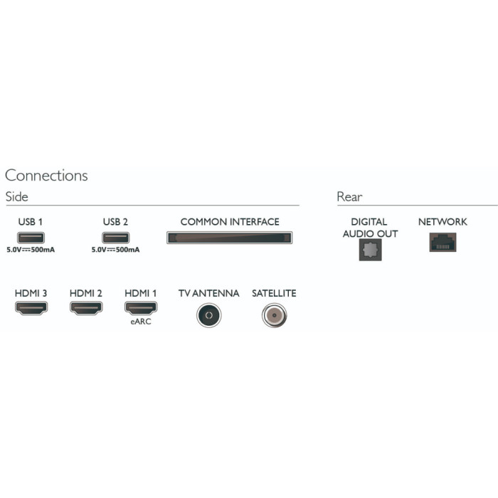 Ethernet - RJ-45, USB Type-A, USB Type-A x 2, вход HDMI, вход HDMI x 3, выход аудио цифровой оптический, выход на наушники, слот CI x 2, слот CI/CI+