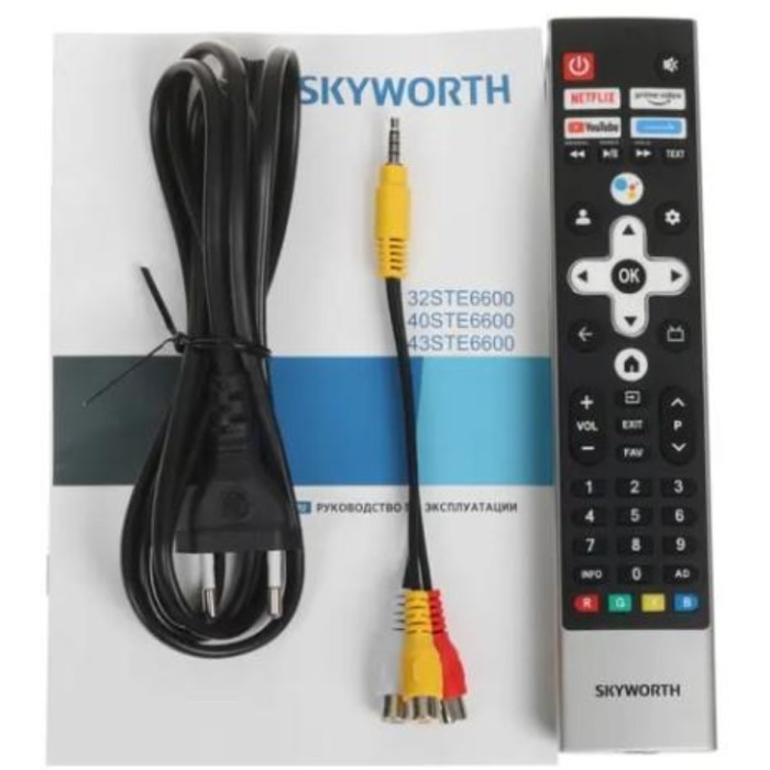 Общие параметры и питаниеТиптелевизор LEDМодельSkyworth 32STE6600Питание100-240 ВЦвет рамкисерыйЦвет подставкисерыйЭкранТип подсветки экранаDirect LEDРасширенная технология экрананетДиагональ экрана (дюйм)32" Диагональ экрана81 смРазрешение экранаHD, 1366x768Формат экрана16:9Стандарты HDTVHD 720pПоддержка HDRестьТехнология HDRHDR10, HLGПараметры матрицыЧастота обновления экрана60 ГцТип матрицыDLEDЯркость200 Кд/м²Угол обзора178° / 178°Smart TVОперационная системаGoogle TVПоддержка Smart TVестьГолосовой помощникGoogle AssistantWi-FiвстроенныйПрием сигналаЦифровые тюнерыDVB-T, DVB-T2, DVB-C, DVB-S, DVB-S2, ATVТелетекстестьЗвукМощность звука16 ВтТехнология звукаDolby Digital, Dolby Digital PlusСабвуфернетОбъемное звучаниенетМультимедиаВоспроизведение с внешних носителейестьПоддерживаемые носителиUSBОсновные видео файлы и кодекиMPEG-2, MPEG-1, H.264, H.265, H.263, VP8, VP9, MPEG-4, AV1Форматы аудиофайловAC3, EAC3, MPEG1, MPEG2, HE AAC, AC4Основные графические файлыJPEG, BMP, PNGРазъемы и коммутацияКоличество HDMI портов2Версия HDMIHDMI 1.4Другие аудио/видеовходыантенный входВыход на наушникиестьДругие аудио/видеовыходыаудио S/PDIF (оптический)Количество USB2Слот для CI/PCMCIAестьУстройство для чтения карт памятинетBluetoothестьПорт EthernetестьDVB CAMнетДругие порты и интерфейсынетФункцииИгровой телевизорнетКартинка в картинкенетDLNAнетHDMI CECестьHDMI ARCестьФункция TimeShiftестьЗапись видеоестьПоддержка AirPlayнетУправление со смартфонанетКреплениеРасположение подставкипо бокамДополнительная информацияКомплектацияпульт ДУ, документация, ножка подставки х 2 штОсобенности, дополнительноRAM 1.5 Гб, ROM 8 Гб