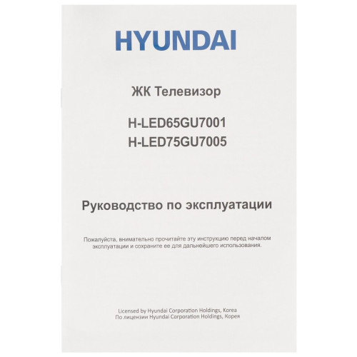 Телевизор LED Hyundai 65' H-LED65GU7001 Салют ТВ черный Ultra HD 60Hz DVB-T DVB-T2 DVB-C DVB-S DVB-S2 USB WiFi Smart TV (RUS)