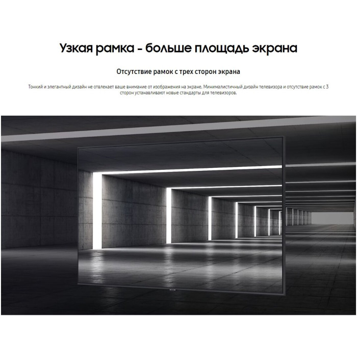 Благодаря технологии PurColor, зритель ощущает себя участником событий, происходящих на экране. Эта технология обеспечивает вывод на экран богатую палитру цветовых оттенков, в результате чего зритель испытывает эффект полного погружения в действие на экране. Интеллектуальный апскейлинг до 4K, позволит вам смотреть ваш любимый контент с более низким разрешением в сверхчетком разрешении 4К. Кроме того, благодаря улучшенной технологии обработки цвета, вы получите удовольствие от реалистичной цветопередачи. Экран 4K UHD телевизора содержит в 4 раза больше пикселей по сравнению с экраном FHD телевизора, благодаря чему вы видите исключительно четкое изображение с превосходной передачей мельчайших деталей. Теперь вы сможете различить в каждой сцене мельчайшие детали. Технология High Dynamic Range увеличивает диапазон яркости экрана вашего телевизора, благодаря чему вы сможете оценить все богатство цветовой палитры и великолепную детализацию даже в самых темных и светлых сценах. Окружите себя гармоничным звучанием телевизора и саундбара. Уникальная технология Q-Symphony позволяет динамикам телевизора и саундбара работать синхронно, обеспечивая лучший эффект объемного звучания. Тонкий и элегантный дизайн не отвлекает ваше внимание от изображения на экране. Минималистичный дизайн телевизора и отсутствие рамок с 3 сторон устанавливают новые стандарты для телевизоров.