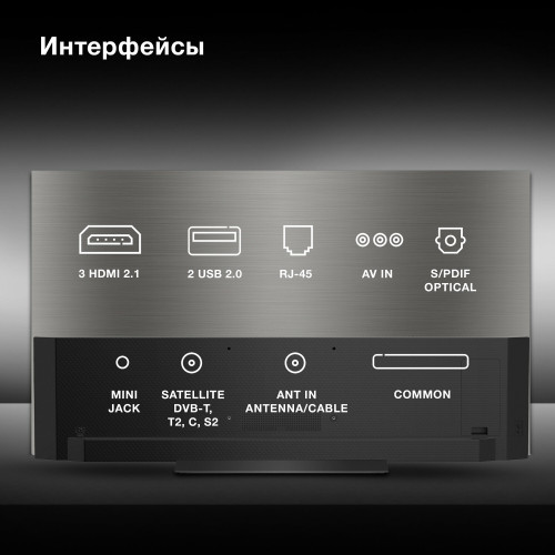 AV-вход, Ethernet - RJ-45, USB Type-A x 2, вход HDMI x 3, вход аудио оптический, слот CI/CI+
