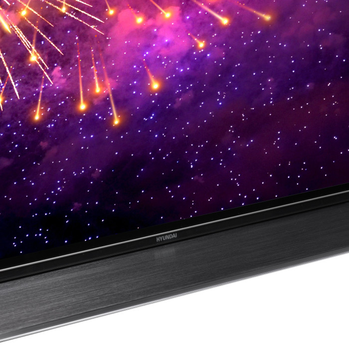 Телевизор Hyundai Android TV H-LED65OBU7700 Frameless черный/черный, диагональ экрана 65" (165 см), разрешение 4K Ultra HD, частота обновления 120Hz, цифровой тюнер DVB-T2, DVB-C, DVB-S2, USB разъем, встроенный WiFi, операционная система Android 10.0, с поддержкой Smart TV
