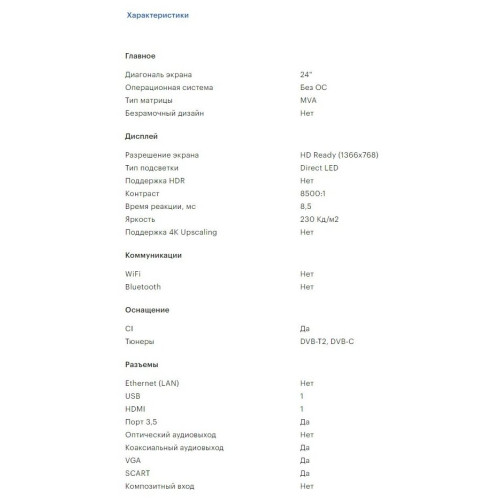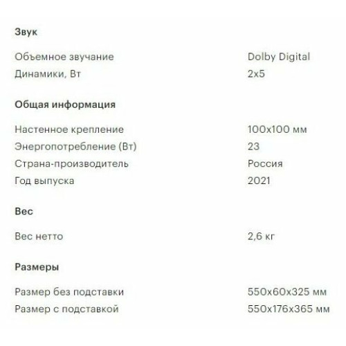 Среди особенностей KIVI 24H550NB отмечаются акустическая система с технологией Dolby Audio, которая позволяет погрузиться в просмотр с реалистичным звучанием, а также порты и разъемы для подключения периферийных устройств.